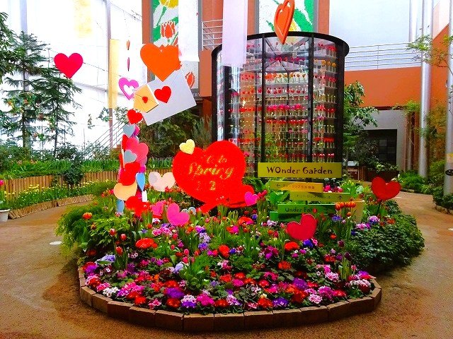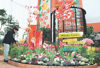 3.7mのタワー型オブジェの中に500本のチューリップの切花が1年中咲いている。そのまわりは「センリョウ」「マンリョウ」の縁起物植物や「シンビジウム」を展示。和傘や扇などで正月らしい華やかな空間を演出。また5000本のチューリップが万華鏡のように四方に広がる「パレットガーデン」、チューリップの秘密や歴史、文化を体感できる「アンダーファーム」を見に行こう。