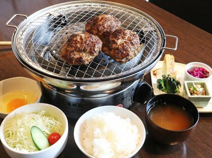 昼はハンバーグや日替わりのランチ、夜は居酒屋として焼き肉や海鮮焼き、多彩な一品料理を味わえる。お子様ランチもそろえるほか、地元産の卵や米粉など素材にこだわった自家製スイーツも充実。子どもから大人まで楽しめる一軒だ。