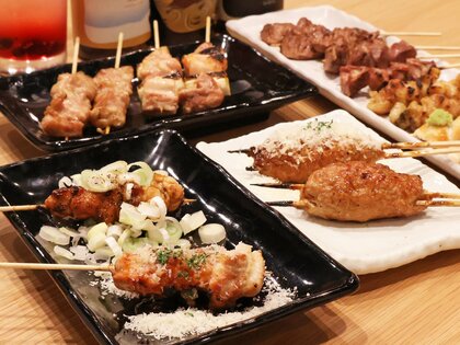 厳選した鶏肉や新鮮な野菜を使った串焼きを堪能できる。備長炭で香ばしくジューシーに焼き上げた焼き鳥は、一度食べると癖になりそう。平日に味わえるランチはボリューム満点の「唐揚げ定食」と「蒸籠(せいろ)蒸し定食」を用意している。
