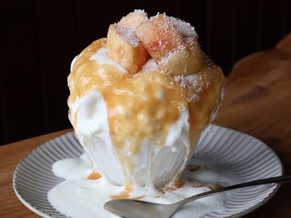 富山市八尾町に通年営業のかき氷専門店が誕生した。純氷を削った淡雪のような氷を、自家製シロップが華やかに彩る。「ももづくしみるく」は、生桃のピューレとマスカルポーネクリームの相性が抜群で爽やか。メニューは季節によって変わり、秋冬は濃厚な味わいのかき氷も登場する。