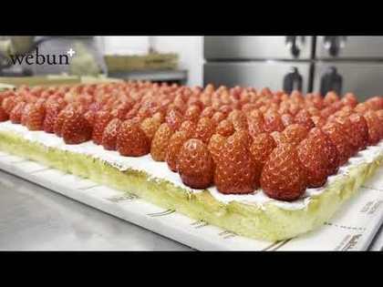 イチゴと生クリーム、スポンジが重なるシンプルなショートケーキ。主役はやはり真っ赤なイチゴ。年間を通して国産のみを使い、時季ごとに最もおいしいものを全国各地から厳選している。イチゴとの相性を考慮して、スポンジは卵黄を多めに加えてしっとり焼き上げ、生クリームは軽やか。果実の香りと味わいを一層引き立たせている。