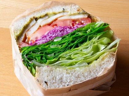 「エッグスサンド」は卵好きのための、オムレツとチェダーチーズを挟んだサンドイッチ。オムレツは卵を3個使い、ふわっと甘めに仕上げた。老若男女から人気という。テイクアウトは予約が必要で、11:30に調理したものを引き渡す。サラダやスープなどが付くイートインのセット(1,200円)もある。