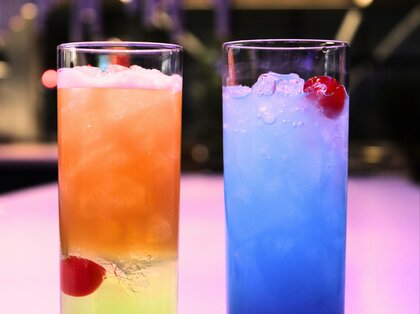 富山駅近くの「カフェコントレイル」で、立山をイメージしたモクテル(ノンアルコールカテル)2種が人気だ。 フルーティーな甘さが口に広がる「立山サンセット」(700円)=写真左=と、甘酸っぱく爽やかな口当たりの「立山サンライズ」(同)=同右。お酒が飲めない人にも富山らしいモクテルを楽しんでもらおうと、作られた。ディナーはもちろん、待ち合わせや電車の待ち時間にも味わってみては。
