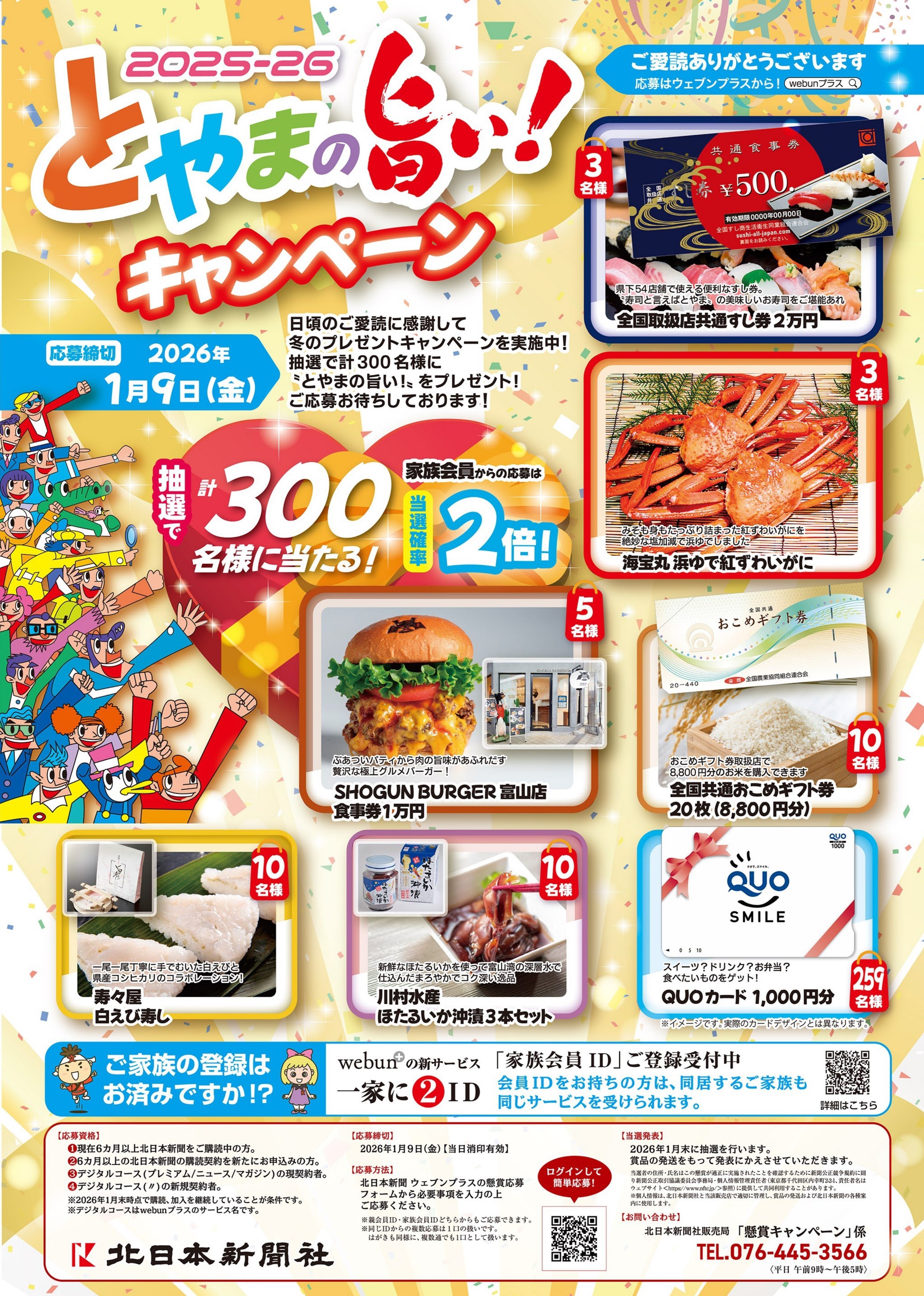 抽選で計300名様に"とやまの旨い!"をプレゼント!