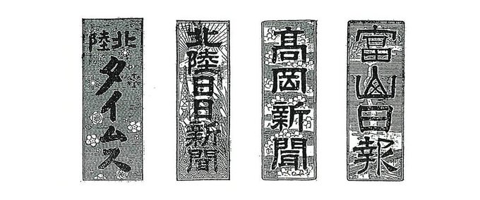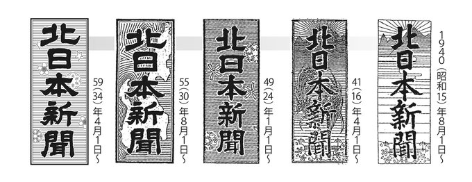 新聞の「顔」とも言われる題字。北日本新聞では中越新聞の創刊以降、時代に合わせて幾度もデザインを変更してきました。現在の形は5代目で、1959(昭和34)年から続いています。星、雪、桜のイラストが描かれ、郷土の豊かな自然を永遠にという願いが込めれています。