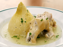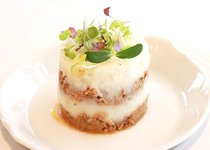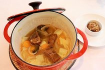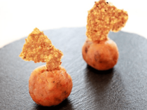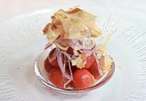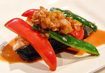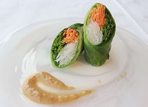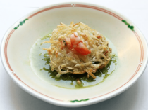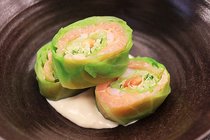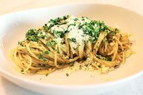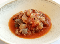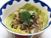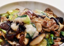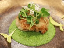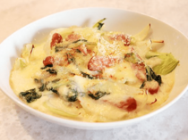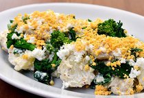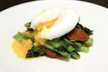 小松菜とチョリゾ(サラミ)のソテーとポーチドエッグ