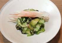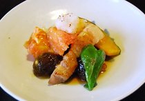 ブリの昆布締めと呉羽ナシのミルフィーユ
