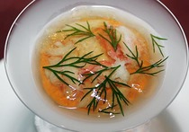 ニンジンのムース カニとコンソメゼリー載せ