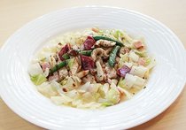 ポークロースの軽い煮込み、キャベツとベーコンのソース