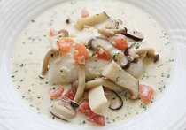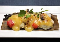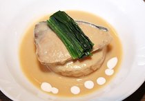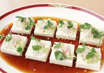豆腐のエビすり身詰め蒸し 魚醤(ぎょしょう)ソース掛け