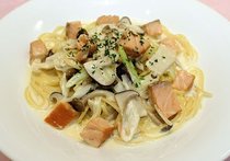 スモークサーモンとキノコのクリームパスタ