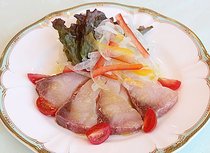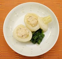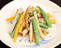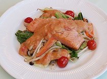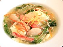 ベニズワイガニとホタテの彩り野菜あんかけ