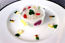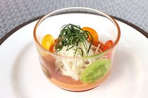 トマトとスイカ、ビーツのガスパチョとカッペリーニ