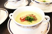 冷製アッシ・パルマンティエと梨のビシソワーズ