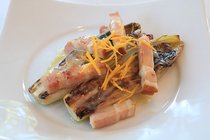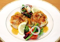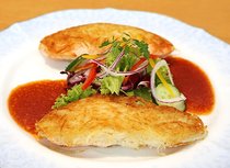 トラウトサーモン ジャガ芋の千切りのせ焼き 季節のサラダ添え
