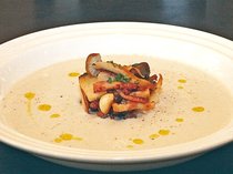 ゴボウのポタージュ ~キノコとベーコン添え~