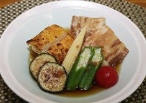 厚揚げ豆腐と豚肉の梅だれ 夏野菜添え