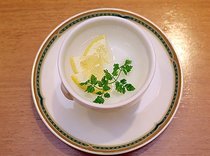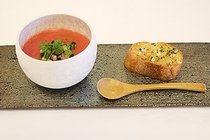 トマトとアメリカンチェリーのガスパチョガーリックトースト添え