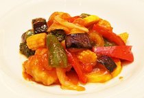 夏野菜の鶏チリ炒め