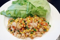 トウモロコシと海老の彩り炒めのレタス包み