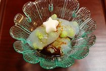 枝豆のくず餅(ミルク氷と黒蜜かけ)