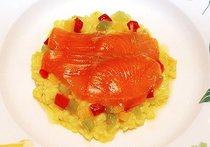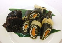 湯葉とワカメ、カニ身のしょうゆゼリーかけ