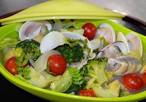 雪の下野菜とハマグリの塩麹(こうじ)蒸し