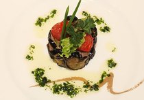 牛ひき肉、ナス、トマトのセルクル詰め