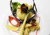 タイの若竹揚げと山菜黄身揚げ