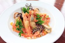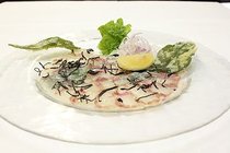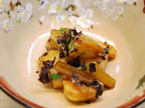 マダラの白子とホタテ貝のムニエルみぞれ風味