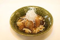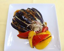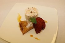 豚ばら肉の黒こしょう風味 魚津産リンゴ添え