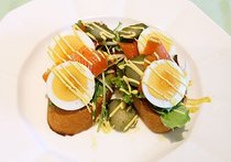 スモークサーモンとピクルスのオープンサンド・カレー風味