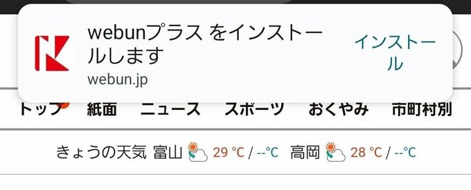 下記のような画面からインストールすると、よりスムーズに通知を受け取ることができます。