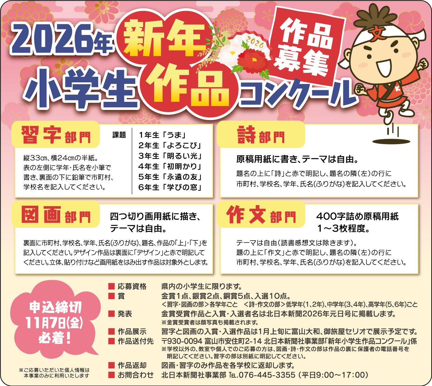 「習字」「図画」「詩」「作文」の4部門で作品を募集します。