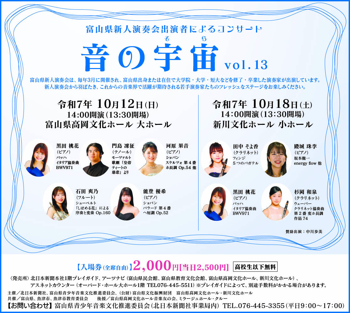 富山県新人演奏会出演者によるコンサート「音の宇宙vol.13」