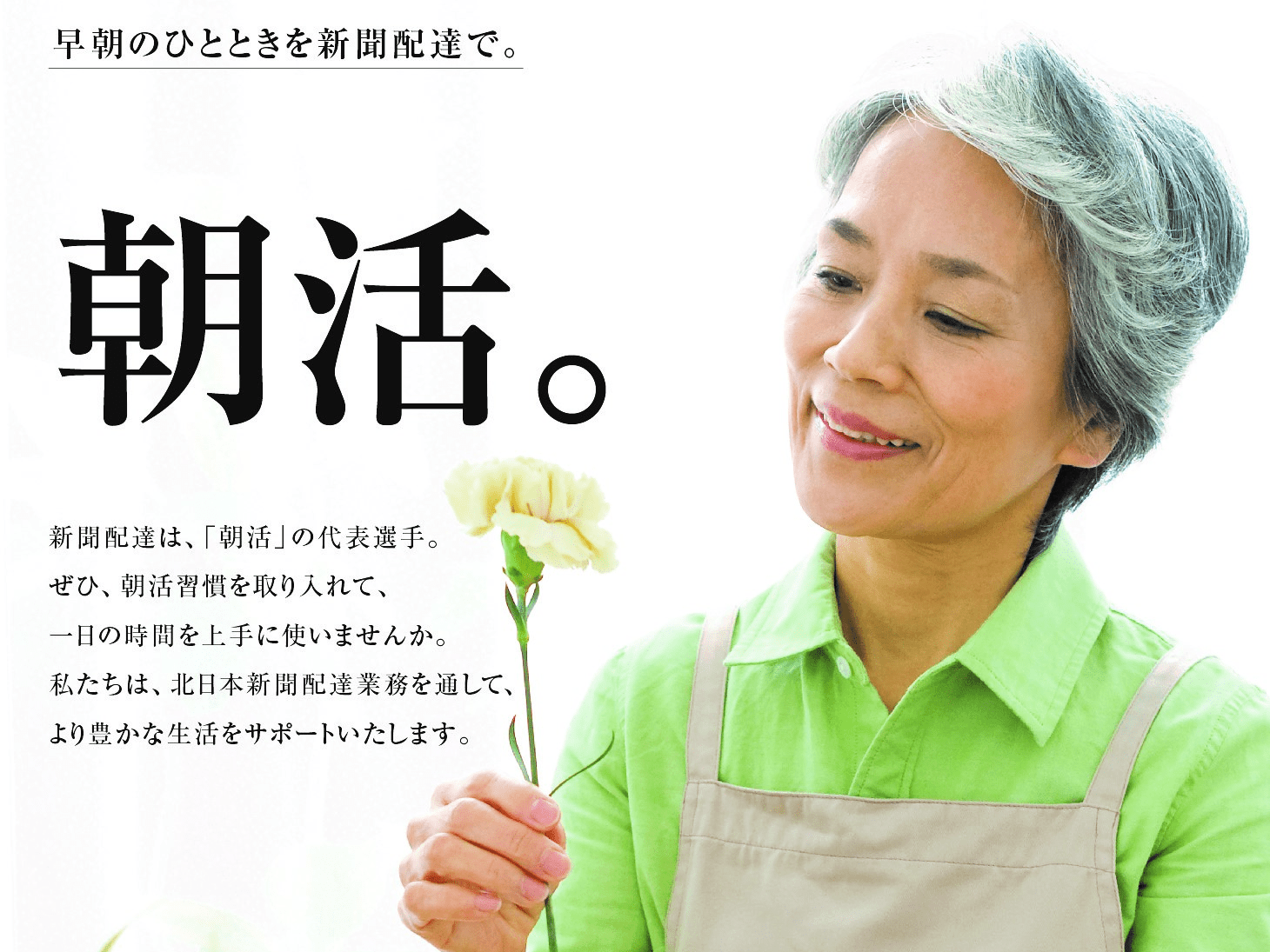 生活時間も社会参加も自分でデザインする時代です。北日本新聞販売店は、地域の皆さんに配達業務のお仲間になっていただきたいと考えています。